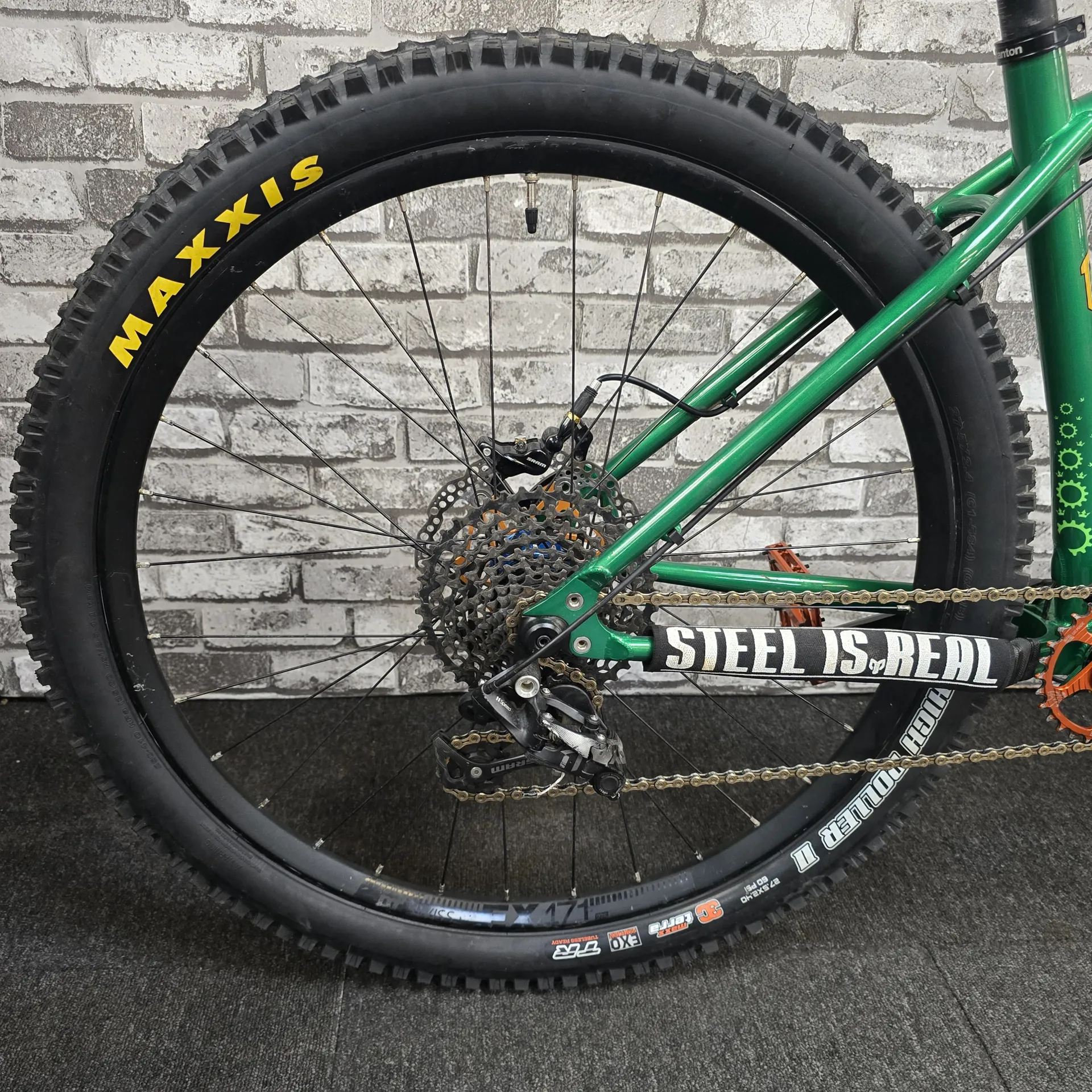 - DT Swiss EX471 rims paired with Hope Pro4 hubs — tough, reliable, and trail-proven wheelset